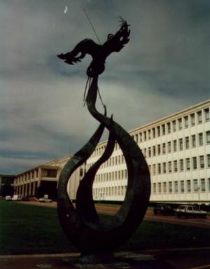 The Phoenix Memorial, University of Caen (Campus 1). The wartime university was completely destroyed after the Normandy Landings of June 1944. The phoenix represents its postwar resurrection from the ashes.