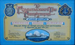 ……… On behalf of the ship’s company, the commanding officer of HMS Probe, Lieut. C. Bellman, RNVR, presented the mother with an illuminated vellum for the child to commemorate the occasion.