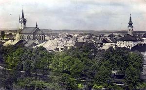The town of Politschka, Czecho-Slovakia as seen from high ground. Situated a few miles from the prison camp.