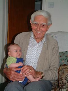 Sydney Le Noury (29/05/2004) just short of his 93rd birthday with his Great Grandson Isaac Stephen Langlois. His great appreciation for life still strong and remarkably, still driving.
