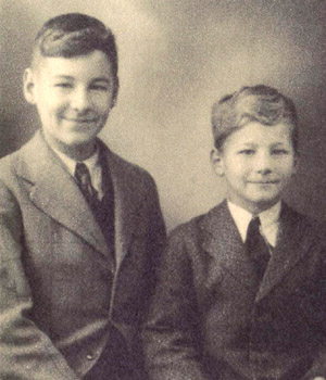Graham and his elder brother John at Christmas 1941 - after recovering on a diet including 'special custard' - actually rich Devon cream - from their malnutrition ordeal at an earlier evacuee billet