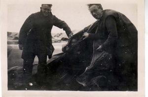 Jack Burgin being uncovered after storm February 1943. The morning during the big storm Tuesday, 23rd February 1943. One of the chaps just after he had been wakened up to tell him his tent was not as it should be.