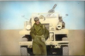 Some lighter moments I recall from this time: my mother, always anxious that I was getting enough food, posted a parcel to me containing a cooked chicken! Needless to say, by the time this reached in the searing heat of the desert it was in an advanced state of decomposition! On another occasion she sent me a hot water bottle, for the cold nights - much hilarity at this - water was rationed and we drank every drop we could find.