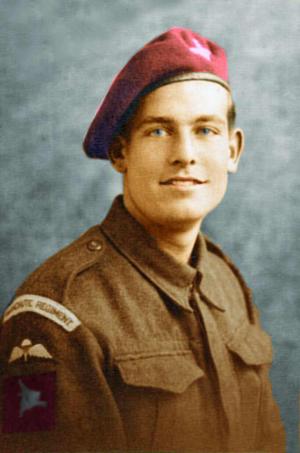 After a few weeks we were billeted in hunting lodges and stables in Melton Mowbray, training with the Battalion was intensive, forces marches over Yorkshire moors, absailing down wool mills in Homefrith, then river crossing the Trent in Notts. One morning volunteers were asked for a special drop, first time from a Dakota just the job walk out the door, just a minute we get to Cottesmore airfield there are RAF instructors from Ringway OK lads we have been trying this ourselves now your turn, strap this kit bag on your leg when about 100 ft to go play it out on a rope, by the way it has about 50 pounds of ammo or mortar bombs in it, take off after about one hour green light on then red out we go, landed at Nether Avon lined up, along came Churchill and Monty, well done boys first time that has been done, back in Melton given 7 days leave. First week in June things start to buss draw ammo confined to billets next thing on the 6th stand down invasion has started with the 6th airborne we remain at Melton.