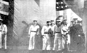Russian Naval Concert Party on Board HMS NIGERIA at Murmansk 1941. Picture taken in the hangar. The Cruiser carried two Seaplanes which were launched by Catapult crewed by the Fleet Air Arm.