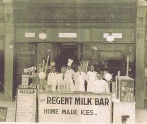 The Regent restaurant, where I lived, in 1938. My dad is third from the right.
