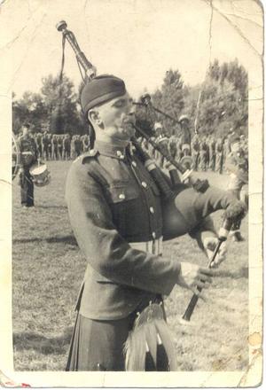 Fusilier Piper John Hardie (1920-85), Corps. Commander's Parade, Landesbergen, Germany, September 1946.