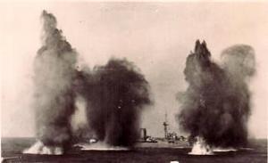 HMS Barham under attack, 1941. Probably Battle for Crete
