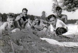 Few of the boys intermixed with the other Kommando. Harold Gosden holding up the old thirst quencher- no not beer- cold coffee.
