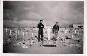 Another view of German graves at El Adem. Jock Gouhan and little Jock Graham in the foreground