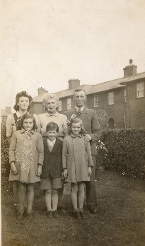 This is one of four photos provided by Joan Haynes of Wrexham. Joan worked in Chester as a nurse during the war. This is a photo of her and her family in Acton, Wrexham. The family had film because her mother worked with Americans.