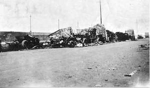 This picture was taken on Thursday June 28th 1940 after the Germans had bombed White Rock in Guernsey. Lorries had been queued waiting to take Tomatoes over to England.