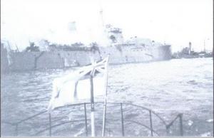 After acceptance and sea trials, which were all satisfactory, we proceeded to sea from Belfast. When we were sufficiently far from shore the Captain cleared lower deck and informed us that he had "opened our sealed orders". These told us that we were to proceed to Portland where we would become the Harbour Defence Ship. As we approached the harbour a mine exploded nearby sending up a huge plume of water. Luckily we suffered no damage to ship or crew.