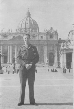 One day we walked to St.Peter’s Cathedral across the very large forecourt and up the flight of steps to the door. We removed our soldier’s caps and entered the church. Looking down the church, it was very large with rows of pews down each side and on the right hand side was Christ on the cross, a statue looking so real with his wounds bleeding. Further down the church on the same side was a statue of St. Peter, seated, carved out of marble. He had a long beard and a long gown and his feet were showing. The big toe on the most prominent foot was half worn away with people kissing it.