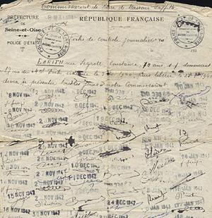The document which my Grandmother had to take to the local Police Station, so that French Police could sign every day to say she was still in the same area.