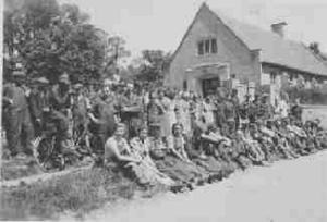Another incident which always stuck in my mind was earlier in the war. My friend and I used to bike to Moreton in the Marsh eight miles from home to the aerodrome which had all Australian airmen, who we went with to the dances and the pubs. The Australians were flying Wellington bombers, before the Lancasters came in. One evening we were in the pub with our boy friends and outside, we heard marching, we all rushed out and there were the arrogant Afrika Korps (Germans) marching to a prisoner of war camp, (I think it was at Bourton on the Hill). They were still dressed in their desert kit and singing at the top of their voices. One of our Aussie friends, who knew German, he said the bas....ds are singing “we march against England” so we all raised our voices and swore at them. By the end of the war, most of the prisoners were given army uniforms, dyed purple with big coloured patches on them and put to work on the land.