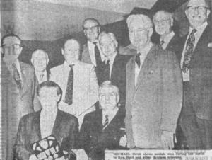 Arnhem Veterans at the Folkestone premiere of ‘A Bridge Too Far’ June 1977. Shown: Kenneth Rust, Ken Mills, Bob Finch, Michael Struk (with medals), Albert Carter, Frank Pearce, Gordon Walker, Don Colmer, Walter Graves, Victor Godwin. Courtesy of South Kent Gazette