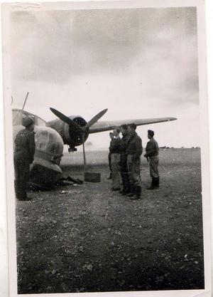 ‘Bombay’ comes to grief after a main wheel burnt at landing ground just beyond Marble Arch February 1943.