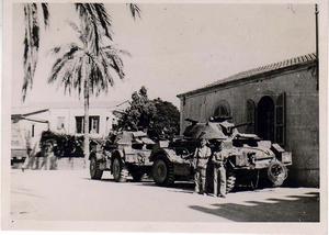 3rd The King’s Own Hussars ‘Jock’ Shepherd and Charlie Riggs outside police H.Q. Jaffa September 1946