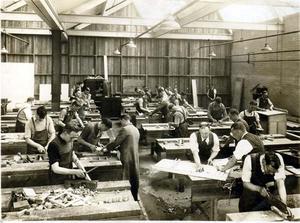 Vocational training course as joiner Leeds after returning from India in 1939 before war broke out. George Irving Beck is shown next to desk on the right hand side.