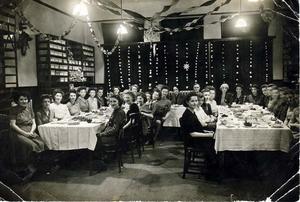 1942 - Christmas party in the Hollerith Department at Edger Allen & Co., Tinsley, Sheffield. Renee Kelley at the head of right hand table.