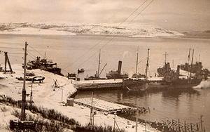 This picture is from Harry Wright’s personal collection taken while he was on board HMS Kent. It shows a pier at Kola Inlet, near Murmansk