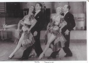 ‘Dual Dancers’. (Left to right: Peggy Spencer, Frank Spencer, Andé Lyons, Walter Laird). Frank, Peggy, Andé and Walter were professional ballroom dancers who demonstrated dances for many of the famous Dance Orchestras, especially the Victor Silvester Dance Orchestra. [Photograph used by courtesy of Mrs Andé Tyrer]