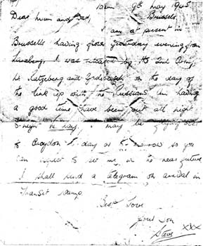 Telegram sent home to parents to notify of release from POW camp.