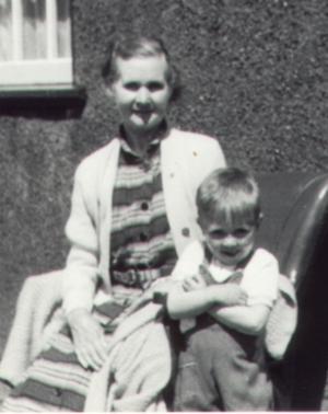 My Dad took this photograph of me at 3 years old with my Grandma, Cecilia McCrickett. We are at the back of our house at 57 Fell View Avenue, Whitehaven. Grandma shared many of her memories with me. [Photograph from collection of J. Ritson]