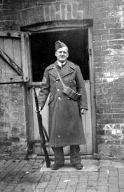 “Being a baker, my father was in a reserved occupation and during the war he enlisted first in the Local Defence Volunteers when that organisation was set up in May 1940. He was one of the younger ones involved. It later became the Home Guard. He transferred after a while to the Special Constables. One of the tasks of the Home Guard was to man a searchlight station behind the Vicarage. When aircraft came over George Lodge had to say “More power!” and this became a catchphrase amongst the men, still used after the war when George was testing car engines at the Foundry Garage. Another of their tasks was taking turns to watch at the top of the church tower. My father remembers carving LDV on the lead of the church tower during a boring night on duty in the first part of the war.