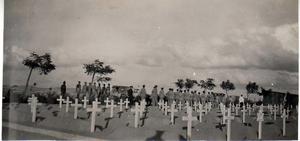Hudson crashes into petrol dump in the act of taking off on a detachment prior to El Alemein. Photographs of the crash and the burial of the victims. Entering the cemetery.