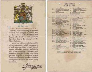 1. So far as I can remember the leaflet with the royal coat of arms was given to each of all the children in our school in Long Sutton, Lincs