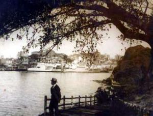 aircraft carrier (in the background) in Sydney Harbour September 1945