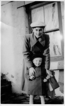 Here I am with Mark, now walking and smiling happily together. All dressed up in our Sunday Best, outside the front door of our little house. Bill would be taking this photo. Angela was born the following year in January 1952.