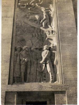 Close up of some of the figures in the stonework of the Marble Arch
