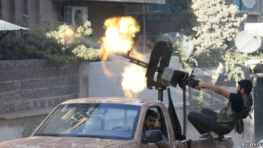 Warga dan aktifis menggambarkan pertempuran berlangsung dalam skala '' yang belum pernah terjadi sebelumnya '', dimana pemberontak menyerang posisi pemerintah dari sejumlah lokasi.