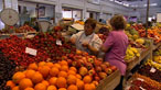 Buying fruit, vegetables and olives at a local market.
