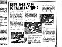 Од уредничката Македонската редакција на Светскиот сервис на БиБиСи започна со емитување на своите програми на 8-ми јануари 1996 година. На 26-ти јануари 2011 година беше донесена одлука да се затвори редакцијата. Последната емисија беше емитувана од студиото во Лондон на 4 март 2011. И така, заврши емитувањето на македонски јазик на програмите на БиБиСи. Затворањето на редакцијата е поради финсиските кусења, рече директорот на Светскиот сервис Питер Хорокс, оценувајќи ги програмите на македонски како професионални и мошне успешни. Ова е официјалниот дел. Сега нешто малку поинаку Значи, само што почнавме да излегуваме од пубертет, со наполнети 15 години и со зрелост и амбиции за нови достигнувања на интернет и за видео авантури, кога решија да не‘ затворат. А навистина бевме во нагорна линија. За кусо време тројно го зголемивме нашето присуство на интернет, а сигурна сум дека го надминавме и постигнувањето од 2008 година кога секој осми Македонец слушаше БиБиСи. Штета... Зад нас останаа почетоците во 1995 година, кога четворица од Македонија и еден Англичанец, тргнаа во непознато - да ја започнат авантурата наречена Македонска редакција на Светскиот сервис на БиБиСи. Златко Андреевски, Маја Трајковска, Горан Шумковски и Жанета Скерлев, заедно со Стивен Ашли, - оваа екипа почна со петминутните вести. Од Скопје ја имавме помошта од нашите репортери Атанас Кировски и Билјана Георгиевска. Од неа, до крајот на емитувањето останавме Златко, Билјана и јас... Не беше лесно, зашто немавме редакција зад себе, требаше да се почне се’ од почеток. Но од друга страна можеби тоа беше и добро, зашто не се угледувавме на тоа како работат „постарите“, туку се обидовме да направиме нешто ново и модерно - куси петминутни вести со многу тонски парчиња и многу динамика. Сосема различно од стариот, авторитативно монотон стил на Светскиот сервис на БиБиСи со призвуци на времето од пред децении. Па така, БиБиСи на македонски за кусо време стана урнек за новиот стил вести на Светскиот сервис. За да ги промовираме новите програмни и новата редакција, организиравме промотивна турнеја - двокатниот црвен британски автобус за две недели ја крстоса цела Македонија, а реакциите беа мошне позитивни.