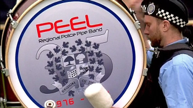 Canada's Peel Regional Police Pipe Band hails from Brampton, Ontario, and was formed in 1976 proudly representing the Peel Regional Police Service and Peel Region throughout the province of Ontario and beyond. The band wears the Red MacPherson tartan and a distinctive black and white diced Glengarry, in keeping with long-standing police and military pipe band traditions.
