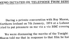 Memo from Tonight reporter Bernard Falk about conversation with Roy Mason, January 1978