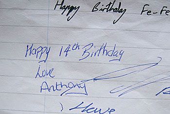 Fionualla still has the note from her birthday in '97. You can see it right here in her photo gallery...
