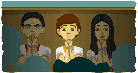 Bhí muid uilig cuachta istigh sa bhád sin. Ní raibh faill suí ná seasamh ann agus bhí an t-uisce ag stealladh isteach thar na taobhanna. Dá rachadh sé go tóin poill, bhí a fhios agam nach mbeinn in ann mé féin a shábháil mar bhí mo lámha agus mo rúitíní ceangailte. Bhí eagla an domhain orm. Soitheach adhmaid a bhí sa bhád – ní raibh aon suíochán inti agus bhí mise brúite síos go dtí tóin an bháid mar a raibh sé crua agus fliuch agus mar a raibh boladh bréan ann. Ní raibh a fhios agam cad é a bhí ar siúl, cá raibh mé ag dul nó an bhfeicfinn mo mhuintir nó mo bhaile arís go deo. Chuala mé iomrá ar na fuadaitheoirí seo roimhe agus bhí a fhios agam gur dóichí go ndíolfaí mé i mo sclábhaí. Níor tharla aon rud eile dom chomh holc leis – agus b’fhada liom an turas mallaithe báid sin.