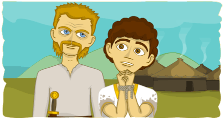 Anois, a Phádraig, d’íoc mé asat agus tá tú anois i do sclábhaí agam. Is é an dualgas atá ort aire a thabhairt do mo chuid caorach de lá is d’oíche, á gcoinneáil slán sábháilte ar chreachadóirí agus ar ainmhithe fiáine. Caithfidh tú a chinntiú nach n-imeoidh aon cheann acu ar seachrán agus go mbogfaidh tú iad chuig féarach nua mar a mbeidh siad ag innilt. Coimheád na mic tíre!
