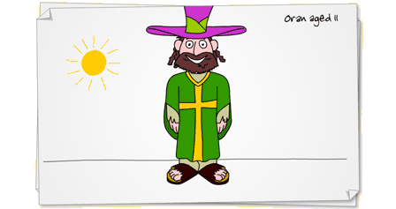 I think St Patrick had a short beard and like very frizzy, short hair too. All tatty, very scruffy, all over the place, all dreadlocks right down his hair. And I think St Patrick wore a hat, very wide and very tall to make himself stand out and make him look different.