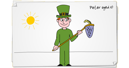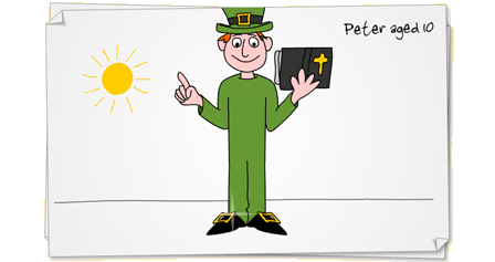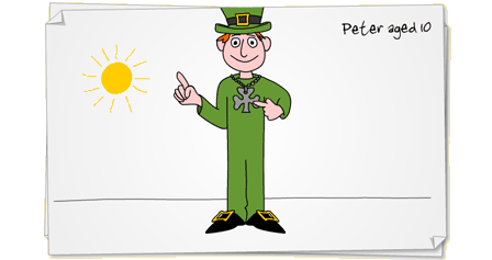 I think St Patrick would have a very big smile and big ears and green eyes. It might have been a bit of a cheeky smile and his teeth I think might have been a bit rotten. In the olden days there wasn’t as good as dentists as now.