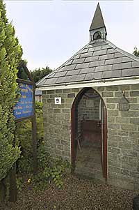 What is not apparent at all is that this little home is in fact a reconstruction. It was built by Tom himself in 1998! This marvellous cottage, complete with its half-door and open fire, is appointed and furnished with a level of accuracy that many museums would envy. Inside, the cottage is filled with genuine artefacts of the era including a working “Gingerbread clock” from the famine of the mid 1800s. Tom used home made cement blocks to construct the shell and then used various inventive and creative techniques to “age” the finish inside and out which now looks - and feels - a very convincing hundred and fifty years old. Throughout the season, Tom guides many visitors of all ages around his centre. He says that school children are the most fascinated. They ask “where is the sink and the hot water” and “is there no bathroom?” Adults are not so surprised about the lack of these facilities. Some of the older ones have their own memories of dwellings just like this and want to sit in the chair by the fire for a few minutes just to reminisce about an era passed by. It was an era when farmers worked the land with horses, chill ploughs, sowers and reapers. | | The smallest church in Ireland? |