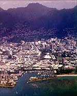 At the airport my friend Rich was waiting for me, and we headed off to our hotel in Waikiki. There are five main islands that make up the US state of Hawaii. Being American, the islands are covered by the Americans With Disabilities Act and facilities tend to be excellent, particularly in newly-built resorts. Oahu is the most popular island with tourists, with Waikiki being the resort of choice. Indeed, holidaymakers could happily spend their full fortnight basking on its beaches, browsing round the shopping malls and visiting local attractions such as the zoo and Pearl Harbor memorial. With a bellyful of delicious local fresh fish and vegetables, a cocktail in my hand and the gentle, soothing, splash of the sea in the background, it was certainly tempting to relax and take life as slowly as the locals do. The thing was, however, I wasn't quite sure who was local and who was a tourist or nearby hotel employee dressed up in the ubiquitous blue shirt emblazoned with fluorescent green palm trees. Quit the shirts, guys - the real palm trees lining the beach edges are much more impressive.