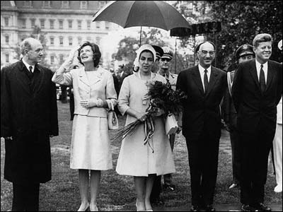 ظاهرشاه و همسرش ملکه حمیرا به همراه کندی و همسرش در واشنگتن