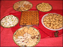 در ايام نوروز علاوه بر گلفروشی ها، بساط شيرينی فروشيها هم که انواع و اقسام شيرينی های ايرانی را به مشتريان عرضه می کنند پر رونق است. به همين مناسبت به سراغ دو شيرينی پز رفته ايم که در اين روزهای پايانی سال سرشان با سفارشهای شيرينی حسابی شلوغ است. فريبا عزب دفتری و دخترش سولماز در منطقه سعادت آباد در شمال غرب تهران در منزل مسکونی شان شيرينی های خانگی برای عيد می پزند و در دو هفته آخر سال آن را به مشتری ها تحويل می دهند. آنها برای گرفتن سفارش در بهمن ماه مقدار زيادی شيرينی درست کردند و با ترتيب دادن يک شوی سه روزه شيرينی خانگی، توليدات خود را به مشتريان عرضه کردند. خانم عزب دفتری می گويد: در اين چند روز مشتريان شيرينی ها را می بيننند، می خورند و سفارش می دهند. بازديد کنندگان شو که معمولا از طريق دوستان و آشنايان و فاميل معرفی می شوند بعد از خوردن شيرينی ها، به خانم عزب دفتری سفارش پخت شيرينی های مورد نظرشان را می دهند و دو هفته آخر اسفند زمان تحويل سفارش هاست. بسته های شيرينی در روی ميز در انواع مختلف چيده شده است. برخی ظرف های خاصی را نيز برای چيدن شيرينی ها در اختيار خانم عزب دفتری گذاشته اند.