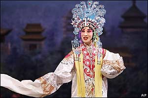 يکی از اعضای خانه اپرای پکن، که شهرت جهانی دارد، در حال اجرای برنامه در تايوان.